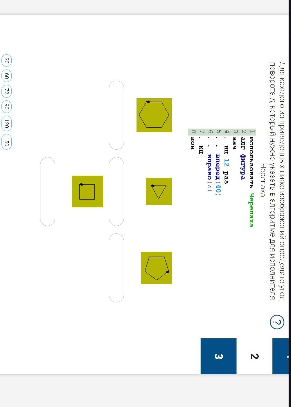 для каждого из приведенных ниже изображений определите угол поворота m, который нужно указать в плгоритме для исполнителя черепаха