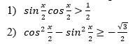 sin(x/2)*cos(x/2)>1/2