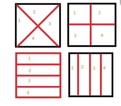 Как разделить квадрат на листе тетради на а) две; б) на четыре равные части?