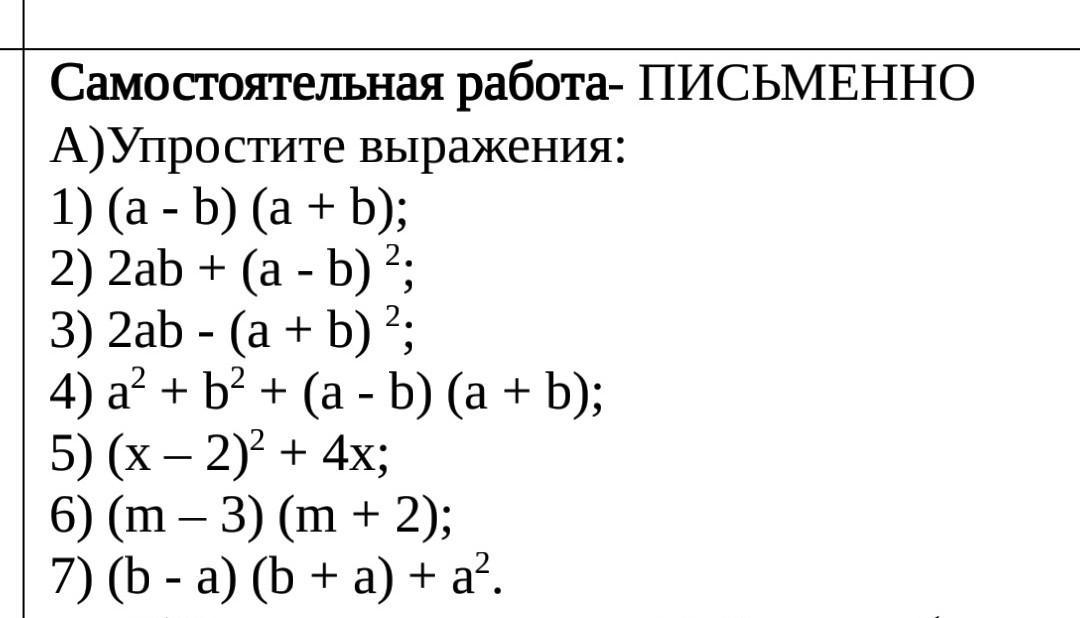 7. (b-a)(b+a)+a²=b²-a²+a²=b²