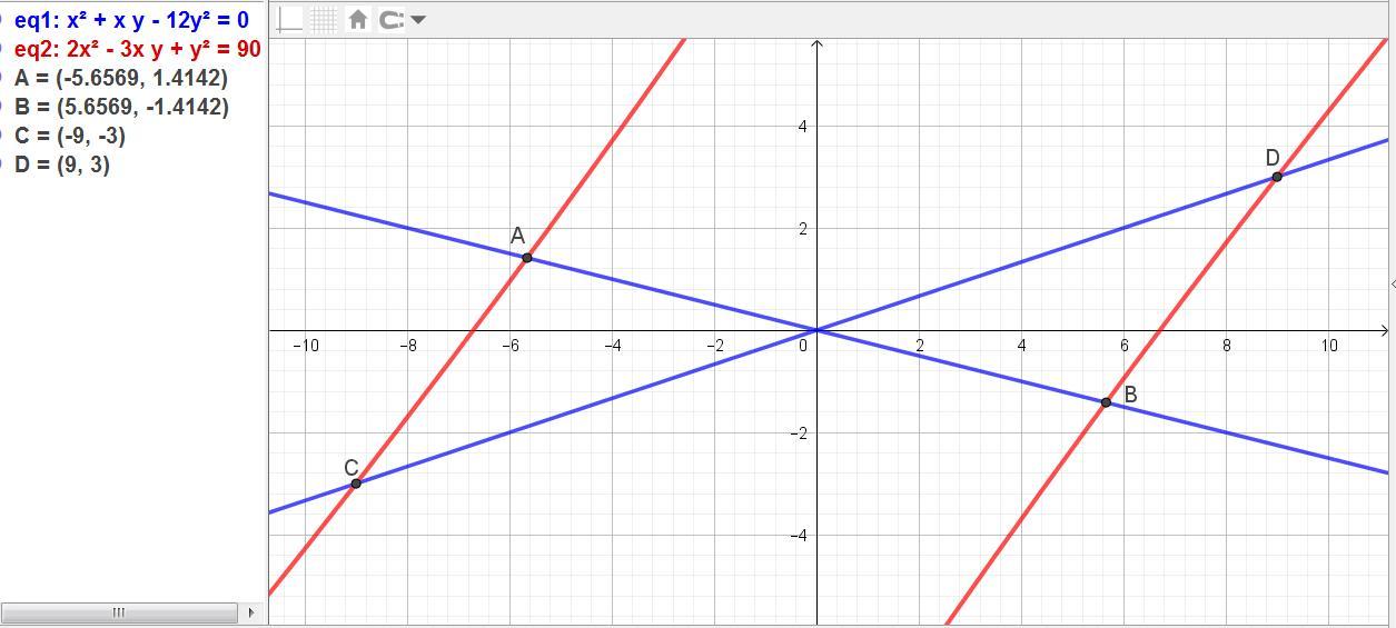 Найдены 2 корня: х1 = -9, у1 = -3, х2 = 9, у2 = 3.