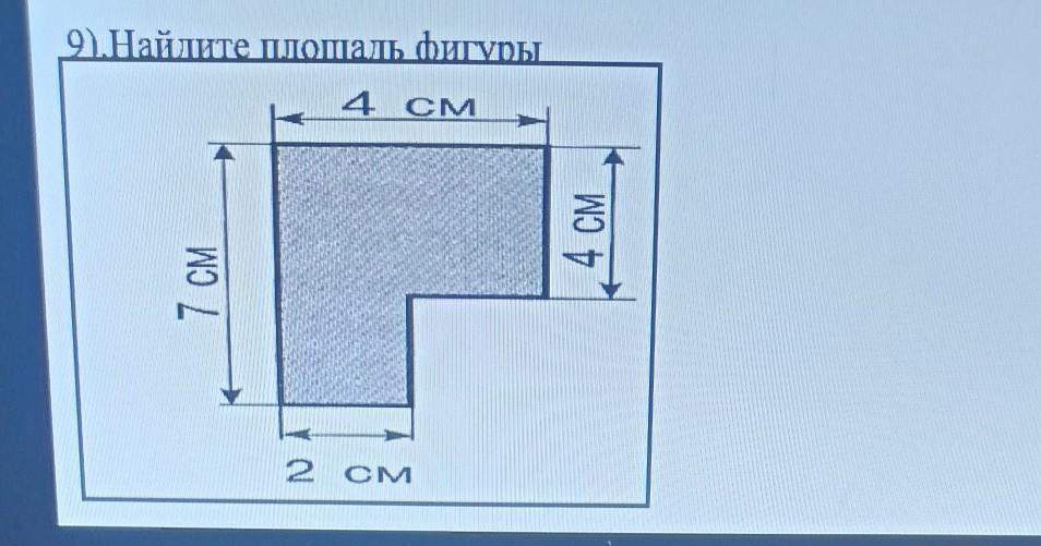 Площадь вырезанного прямоугольника со сторонами 7-4=3 см