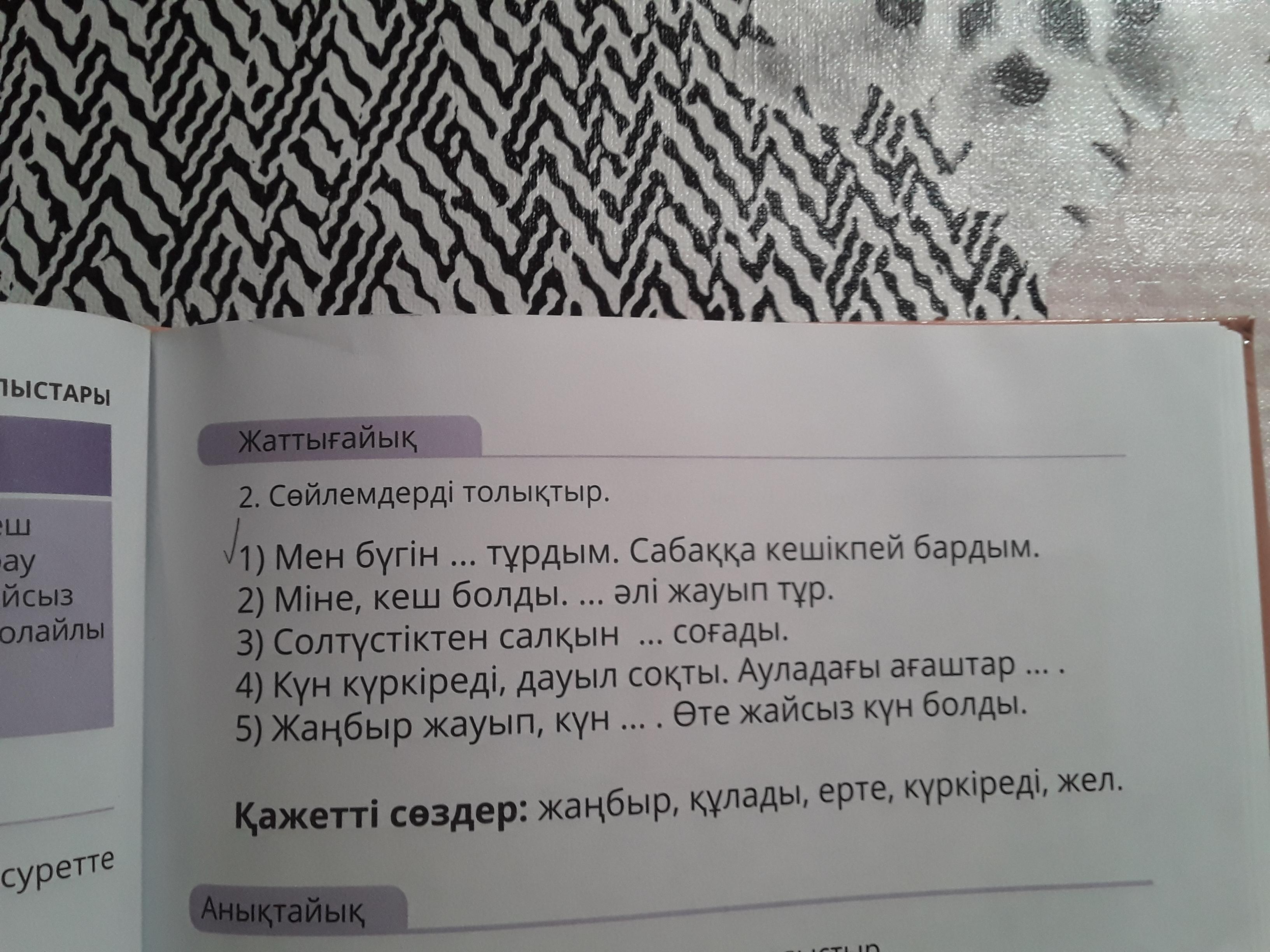 - Мен бүгін ерте тұрдым.Сабаққа кешікпей бардым.
