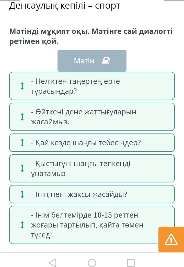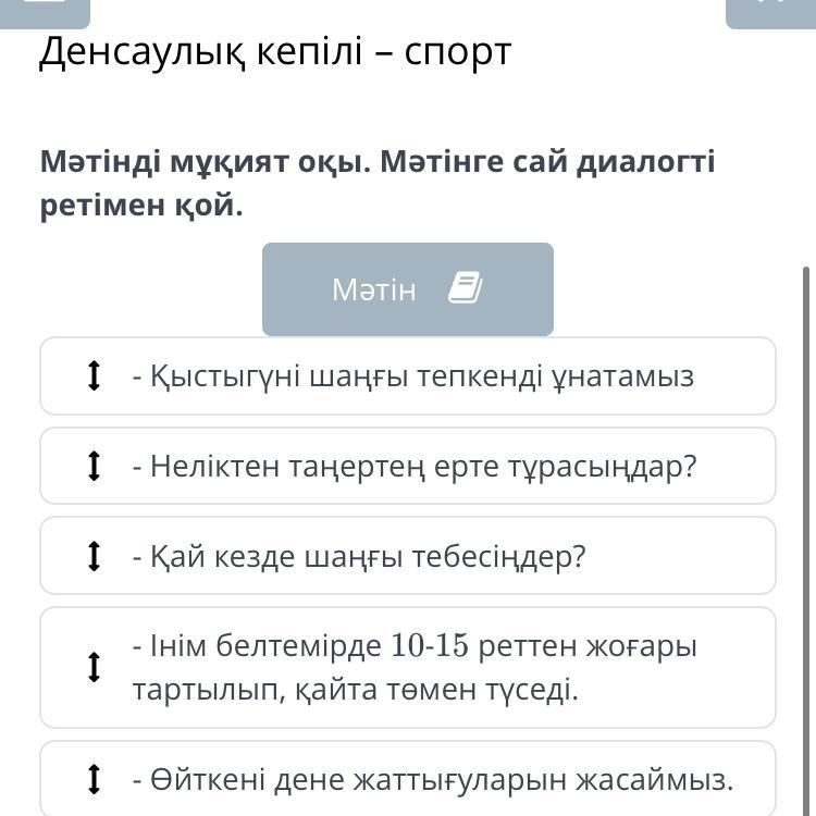 Мәтінді мұқият оқы. Мәтінге сай диалогті ретімен қой.