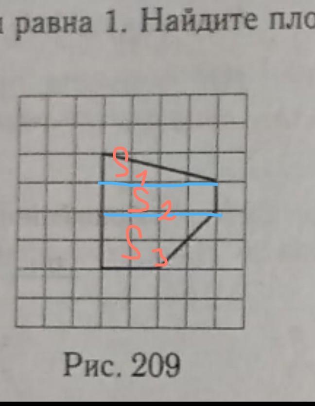 разделим это фигуру на 3 и найдём сумму площадей этих трёх фигур, формулы площади которых мы знаем