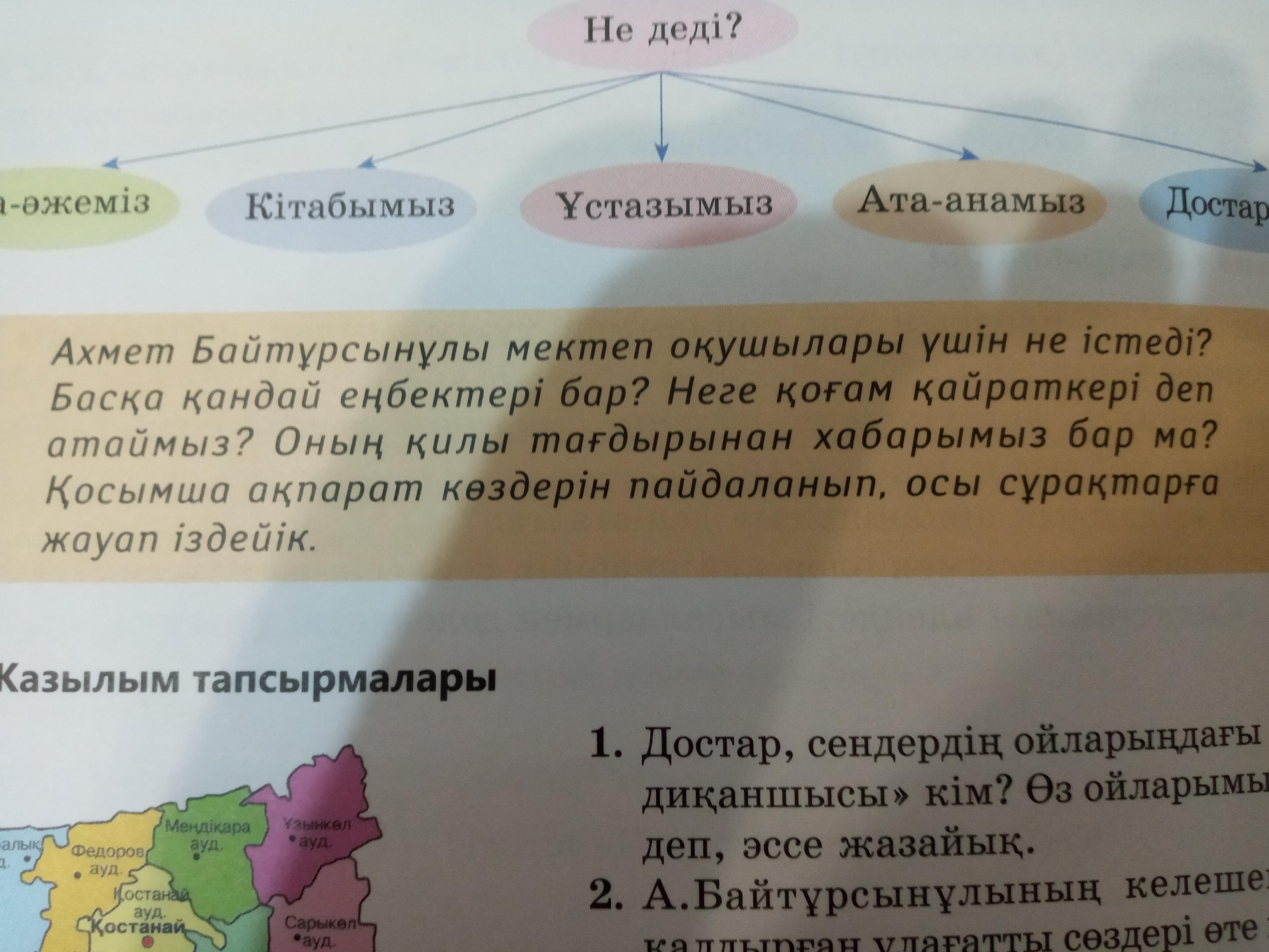 Ахмет Байтұрсынұлы-қазақтың ақыны, әдебиет зерттеуші ғалым, түркітанушы, публицист, педагог, аудармашы, қоғам қайраткері.Қазақ тілі мен әліппесіне араб жазуларынан аударды. 24 таңбадан тұратын "Қазақ жазуы" кітабын жазды. Ахмет Байтұрсынұлы Қоғам Қайраткері де болған ол "Алаш" партиясының қатарында болған.Қазақстан Халық ағарту комиссариаты жанындағы ғылыми-әдеби комиссияның төрағасы, Халық ағарту комиссары,ҚР ОАК-нің мүшесі, Түркістан Компартиясы ОК-нің органы «Ақ жол» газетінде қызметкері болған.1937 ж. тамыз айында Ахмет Байтұрсынұлы тағы да қамауға алынған, алты айдан соң, желтоқсанның 8 «халық жауы» есебінде атылған.