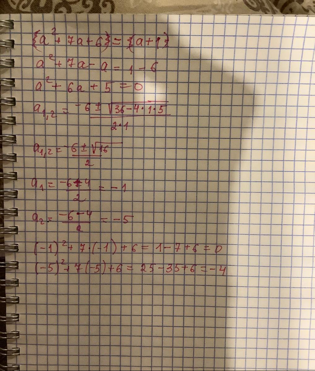 При каком значении a значения квадратного трёхчлена (а² + 7а + 6) и двухчлена (а + 1) равны? Найдите значение трёхчлена при полученных