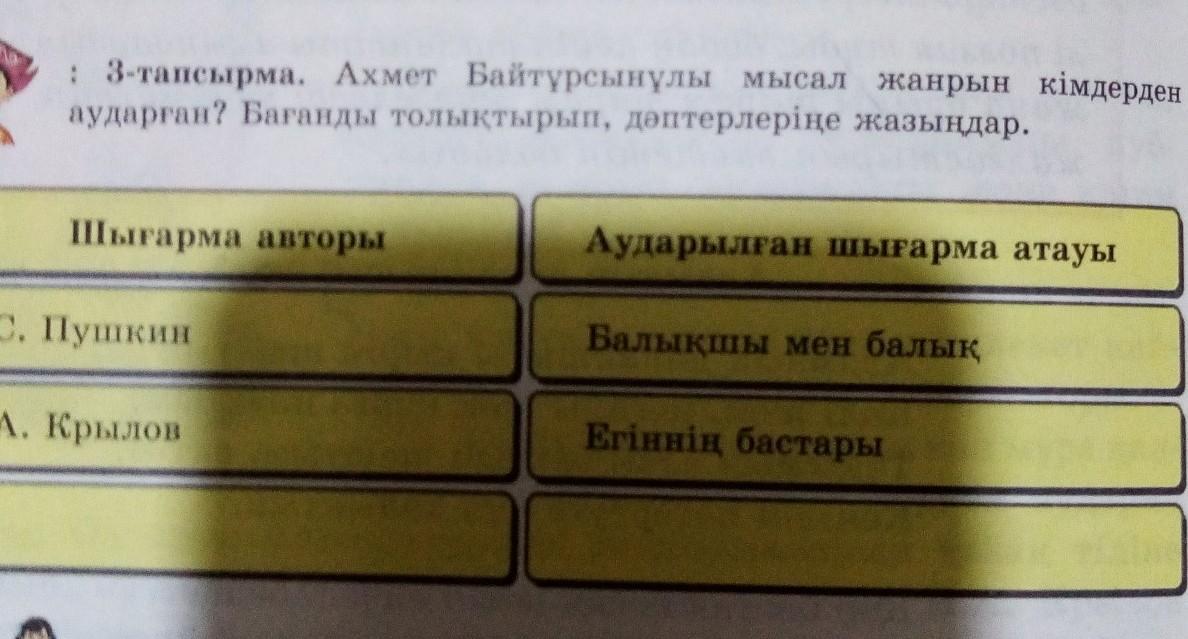 ; 3-тапсырма. Ахмет Байтұрсынұлы мысал жанрын кімдерден