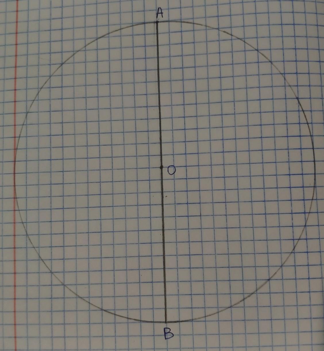 7. Отметьте точку О в тетради. С помощью циркуля начертите окружность диаметра 12 см.