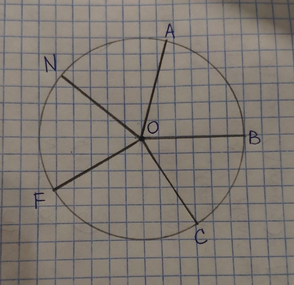 Так как все 5 отрезков равны по условию, то получается что точки A, B, C, F, N равноудалены от точки О, следовательно если точка О – центр окружности, с радиусом равным длине любого отрезка (то есть 3 см), то точки A, B, C, F, N будут лежать на этой окружности.