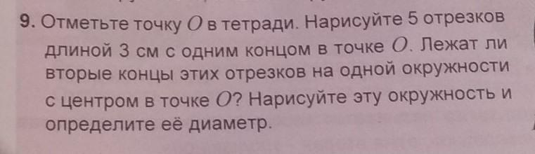 Мы нашли, то что радиус будет равен 3 см. Диаметр вдвое больше радиуса, следовательно диаметр окружности равен 2*3=6 см.