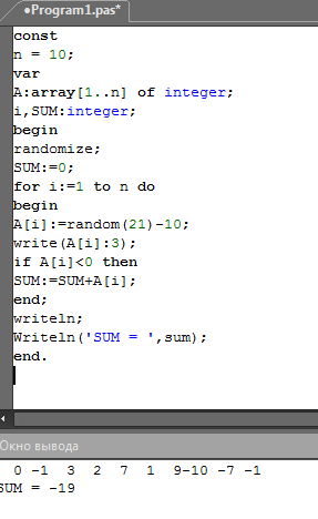 Дан одномерный массив A(N). Найти сумму элементов этого массива меньше нуля. Решить в виде таблицы и составить программу. Решите пожалуйста зависит оценка.