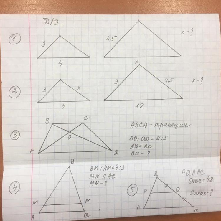 Пожалуйста помогите! Срочно , задачи по геометрии 8 класс на подобные треугольники ,все кроме 5