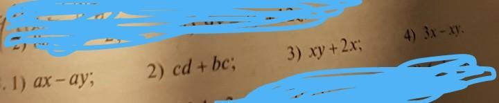 1) а(х-у) 2) с(d+b) 3) x (y+2) 4) x(3-y)