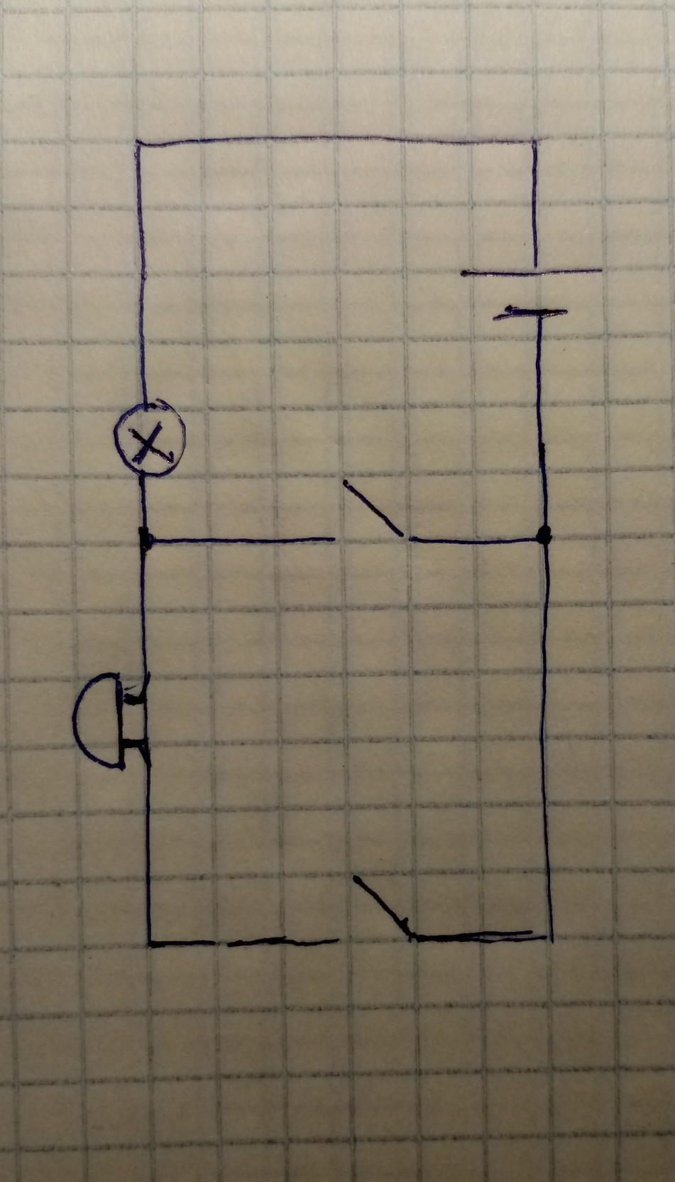Нарисуйте электрическую схему, с помощью которой можно включить только лампу, только звонок или лампу и звонок одновременно