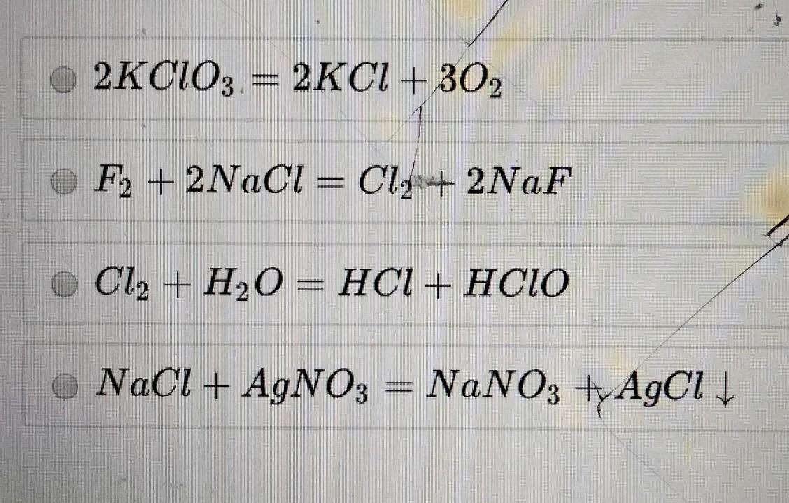 Cl2+H2O=HCl+HClO