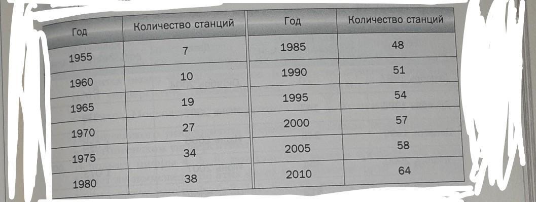 Пользуясь таблицей развития Метрополитена в санкт-петербурге постройте соответствующую столбчатую диаграмму