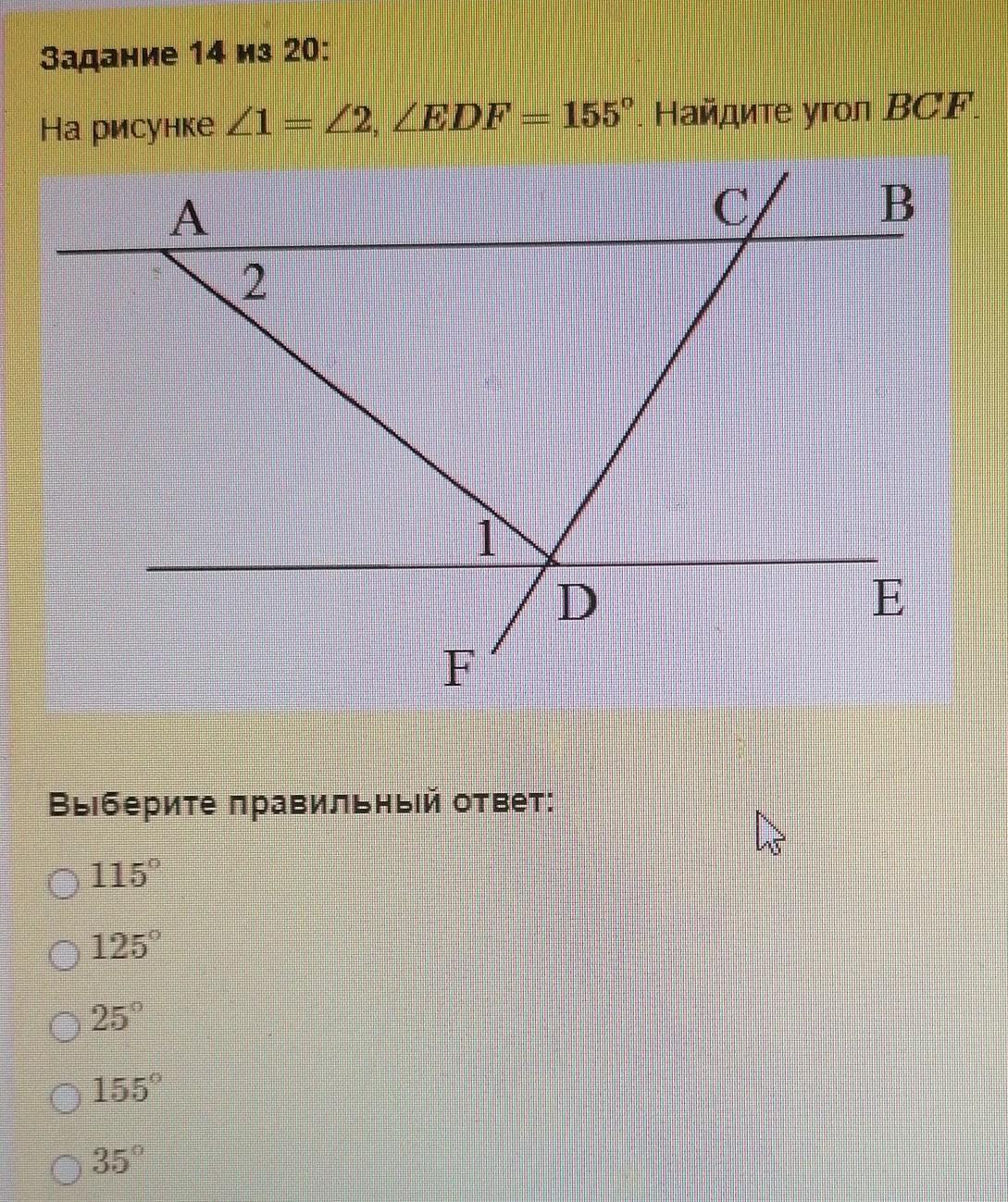 А значит угол EDF = углу BCF = 155 градусов