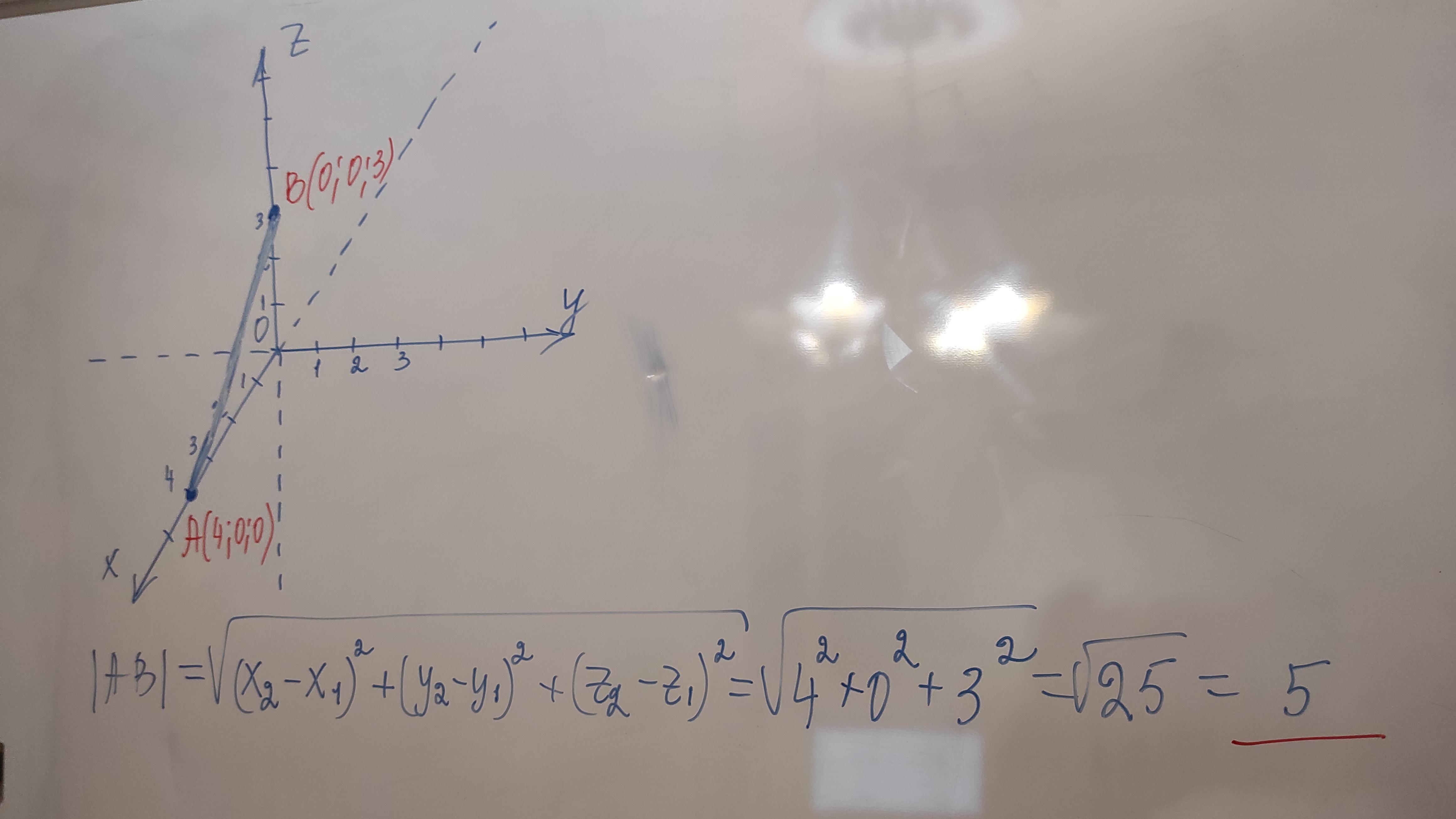 Побудуйте в прямокутній системі координат точки: А(4; 0; 0). В (0; 0; 3). Знайдіть довжину відрізка АВ.