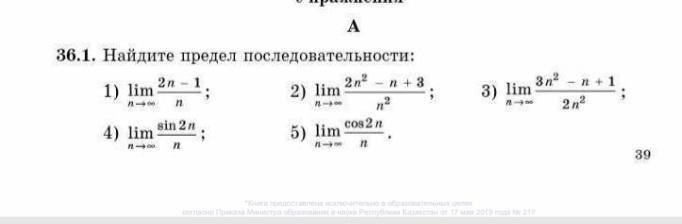 4) по логике, синус ограничен единицей, а н - стремится к бесконечности, можно просто по теореме о двух милиционерах сказать что lim(-1/n)n->besk=0; lim(1/n)n->besk=0=> lim(sin(n)/n) n => besk =0