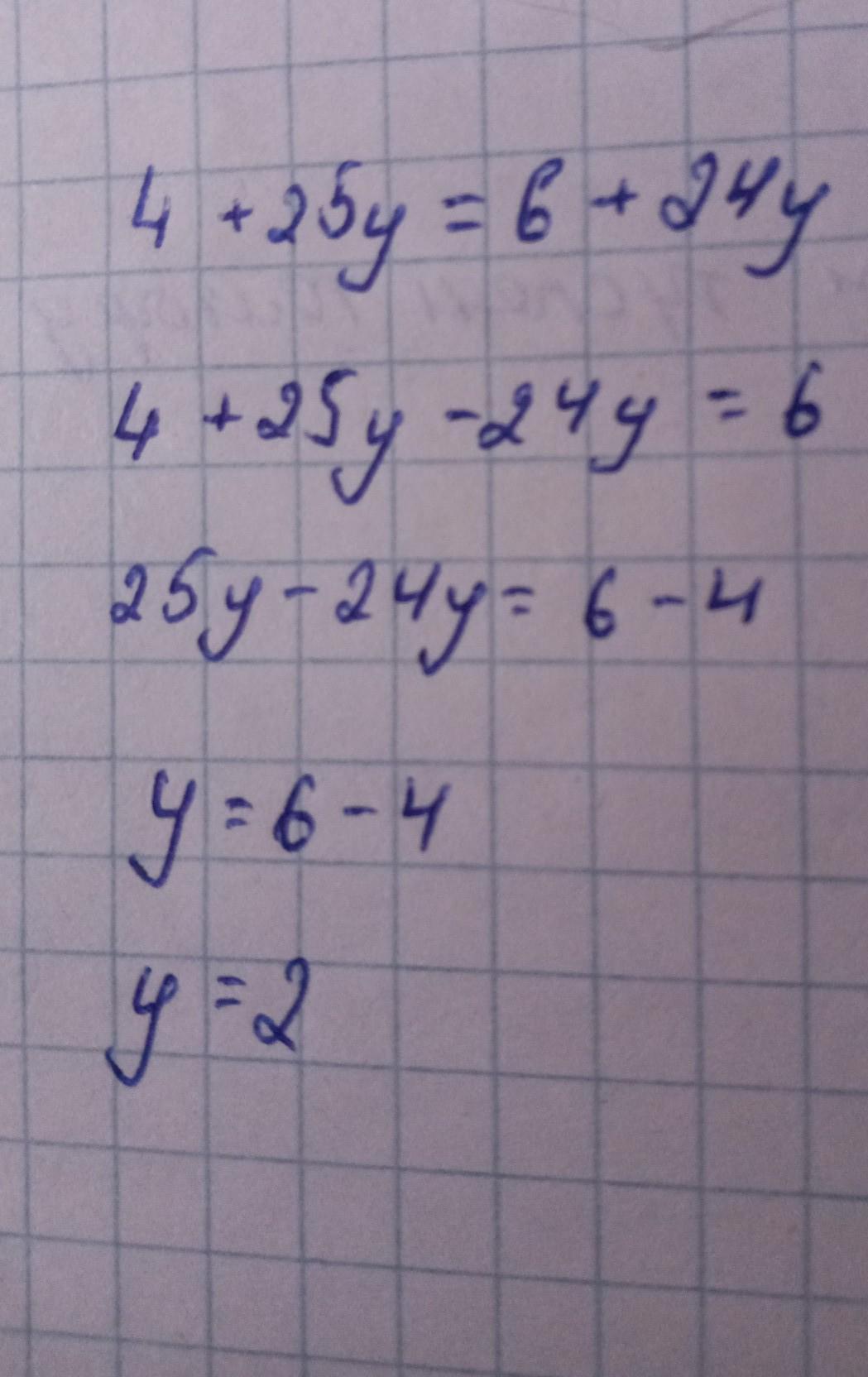 4+25y=6+24y