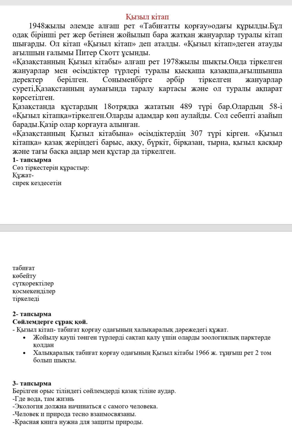 5-қызыл кітапқа жойылып бара жатқан жануарларды қызыл кітапқа енгізеді.