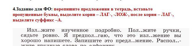 4.Задание для ФО: перепишите предложения в тетрадь, вставьте пропущенные буквы, выделите корни – ЛАГ-, -ЛОЖ-, после корня – ЛАГ-, выделите суффикс –А.