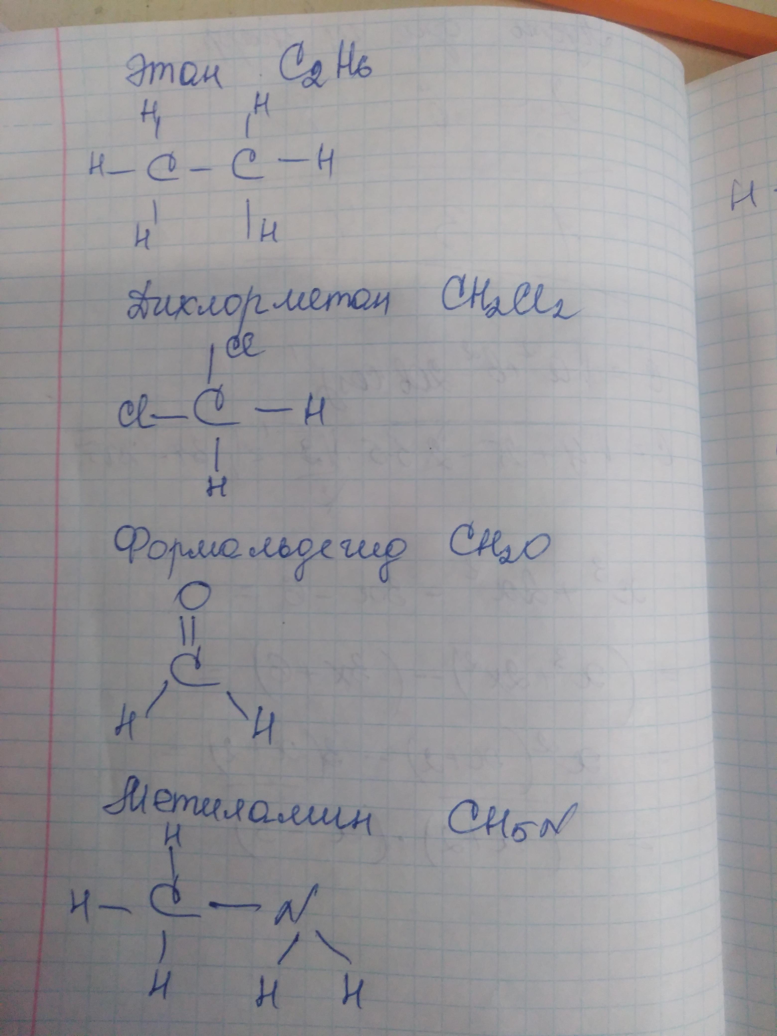 напишите полные структурные формулы веществ по их молекулярным формулам c2h6 ch2cl2 ch2o ch5n