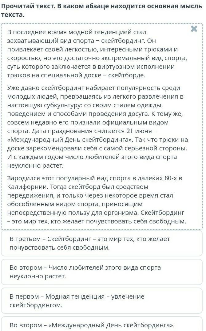 Объяснение: Указано основное представление о скейтбординге. Например: совсем недавно его признали официальным видом спорта.