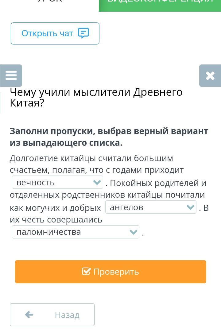 заполни пропуски, выбрав верный вариант из выпадающего списка. Долголетие китайцы считали большим счастьем, полагая, что с годами приходит