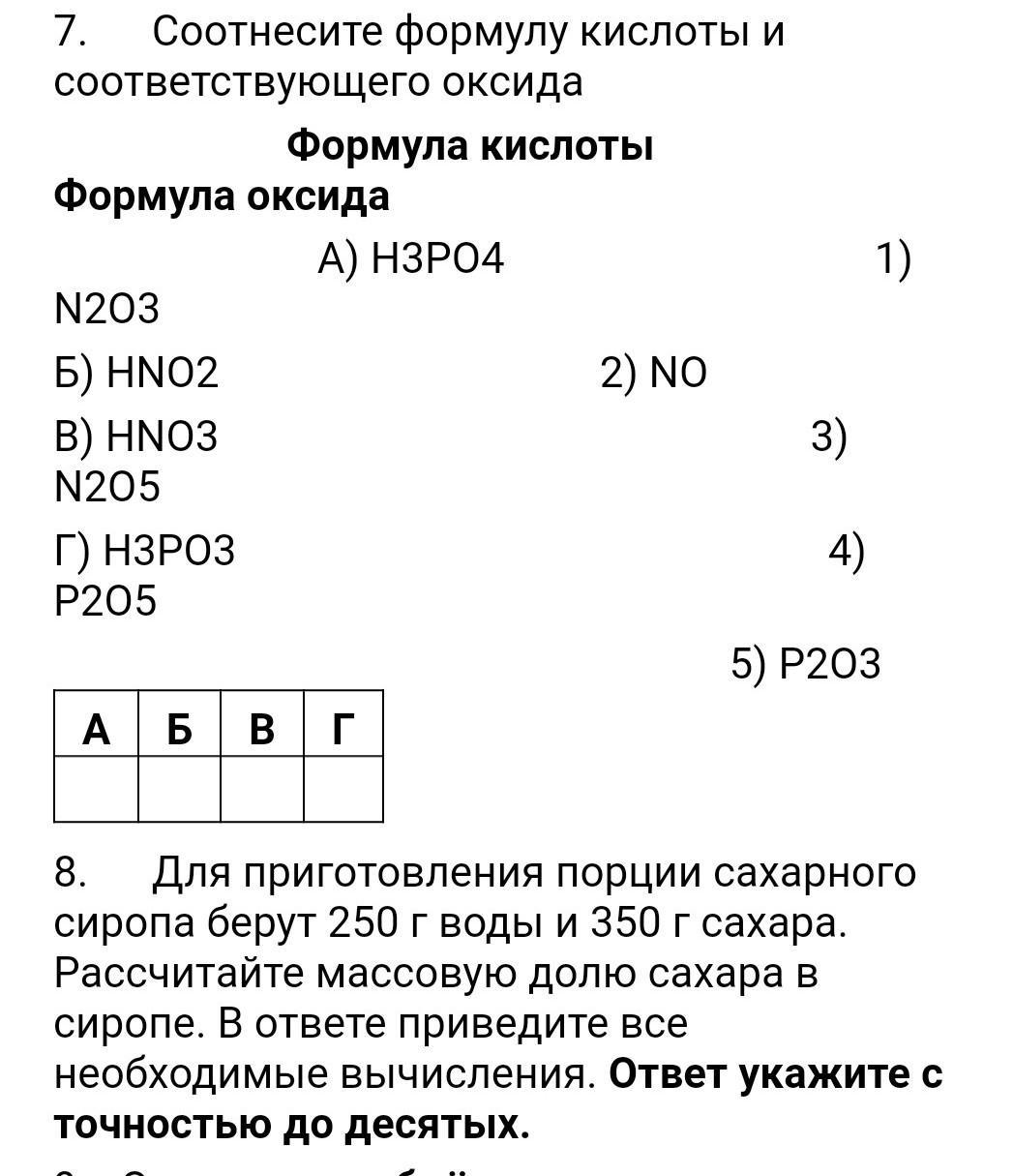 7. А) - P2O5, Б) - N2O3, В) -N2O5, Г) - P2O3