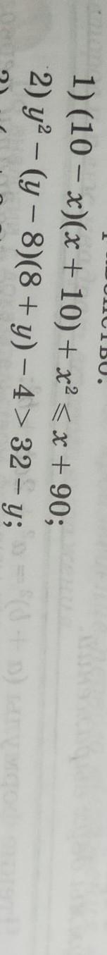 2) y? – (у – 8) (8 +y) — 4 > 32 - y;