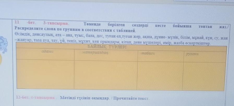 материалдық: ақша, дүние-мүлік, мұнай, үй, кітап