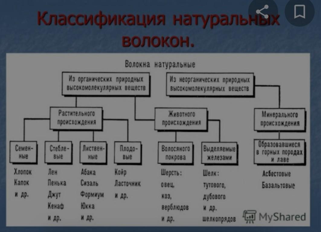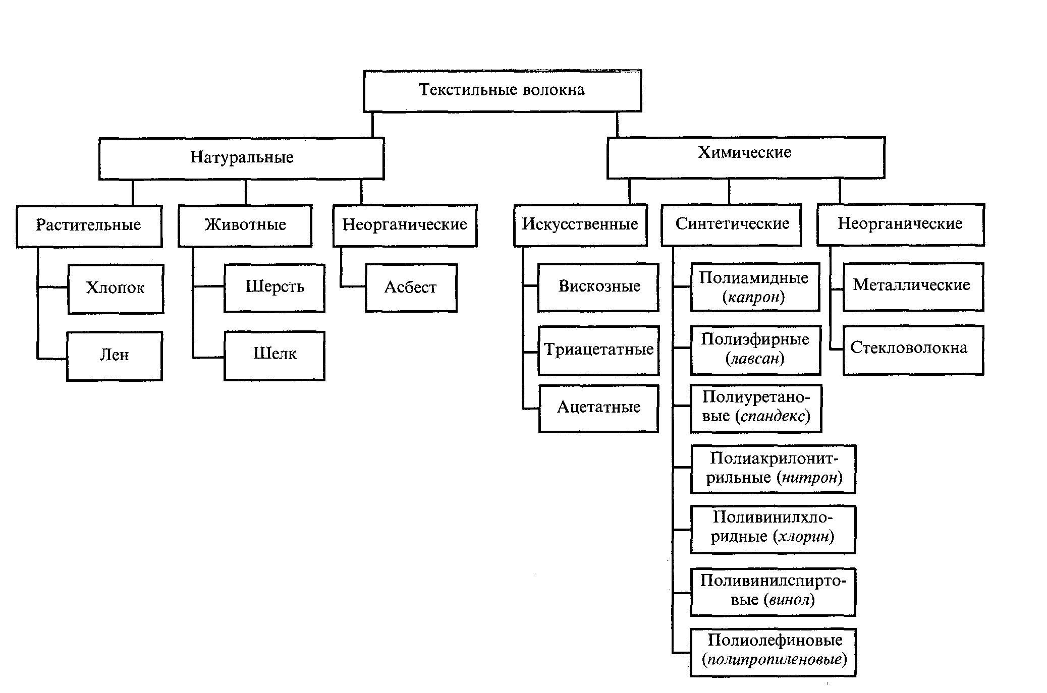 В данной таблицы представлены как искусственные волокна, так и натуральные.
