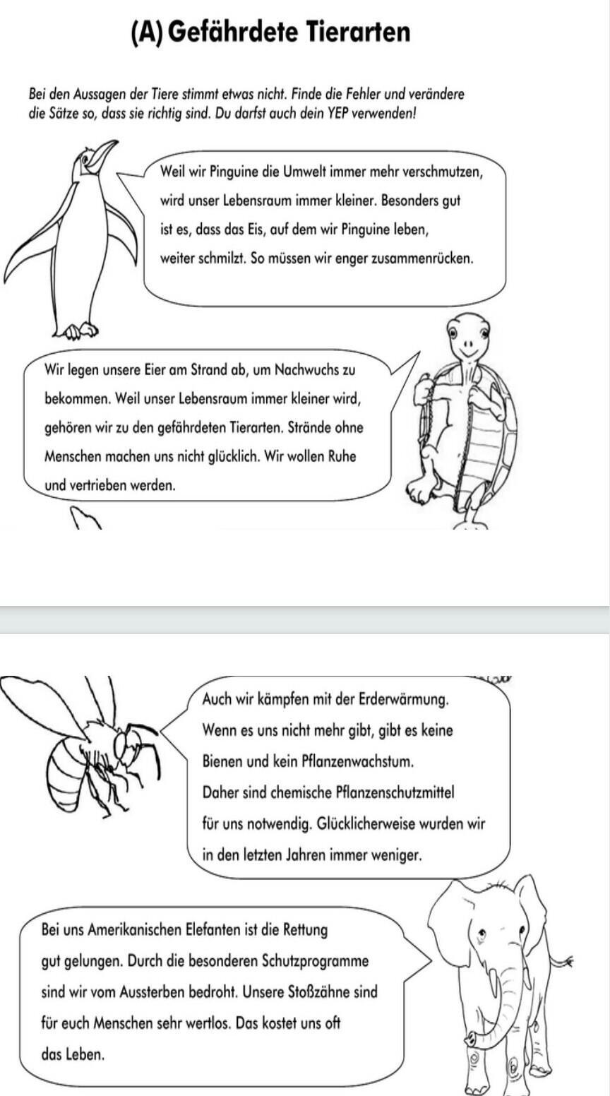 Weil wir, Pinguine, in der verschmutzten Umwelt leben müssen, wird unser Lebensraum immer kleiner. Besonders schlecht (traurig) ist es, dass das Eis, auf dem wir Pinguine leben, weiter schmilzt. Auch wegen der Kälte müssen wir enger zusammenrücken.
