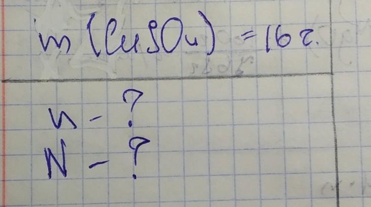 n(CuSO4) = m / М = 16 г / 160 г/моль = 0,1 моль