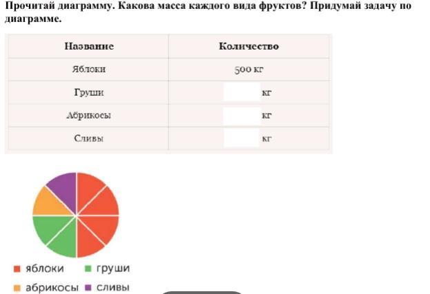 Прочитай диаграмму. Какова масса каждого вида фруктов? Придумай задачу по