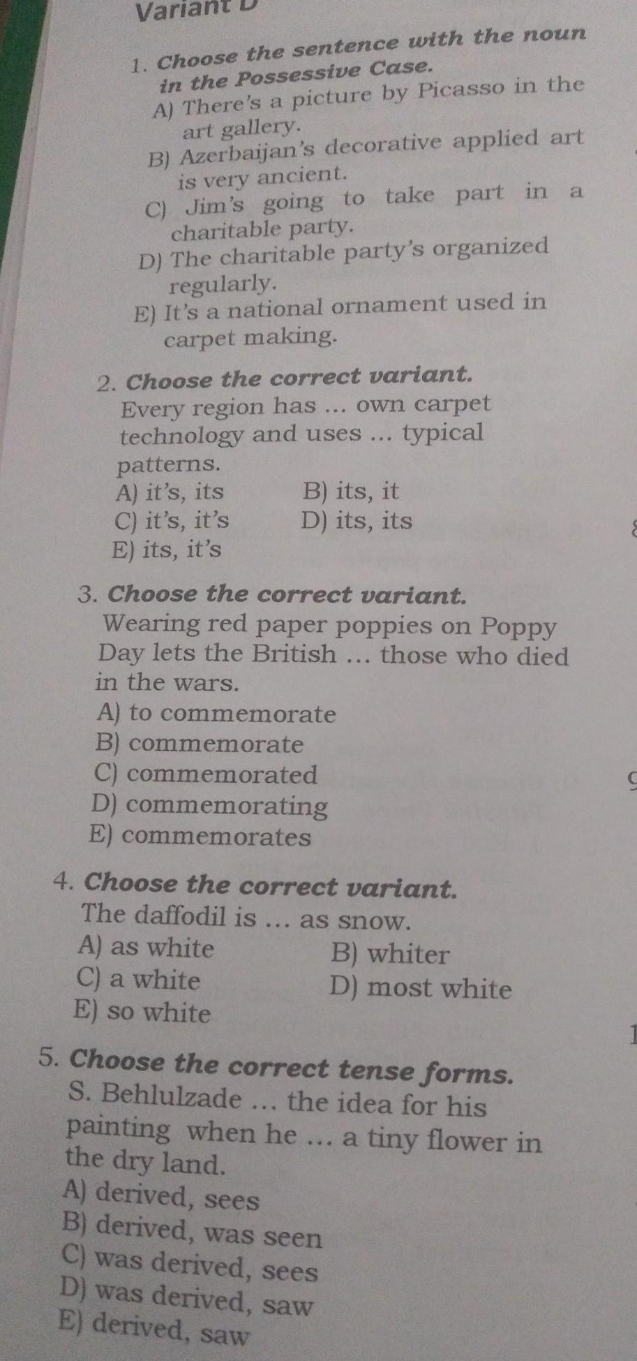 1) B 2)E неуверена 3) C 4)A 5)A или С