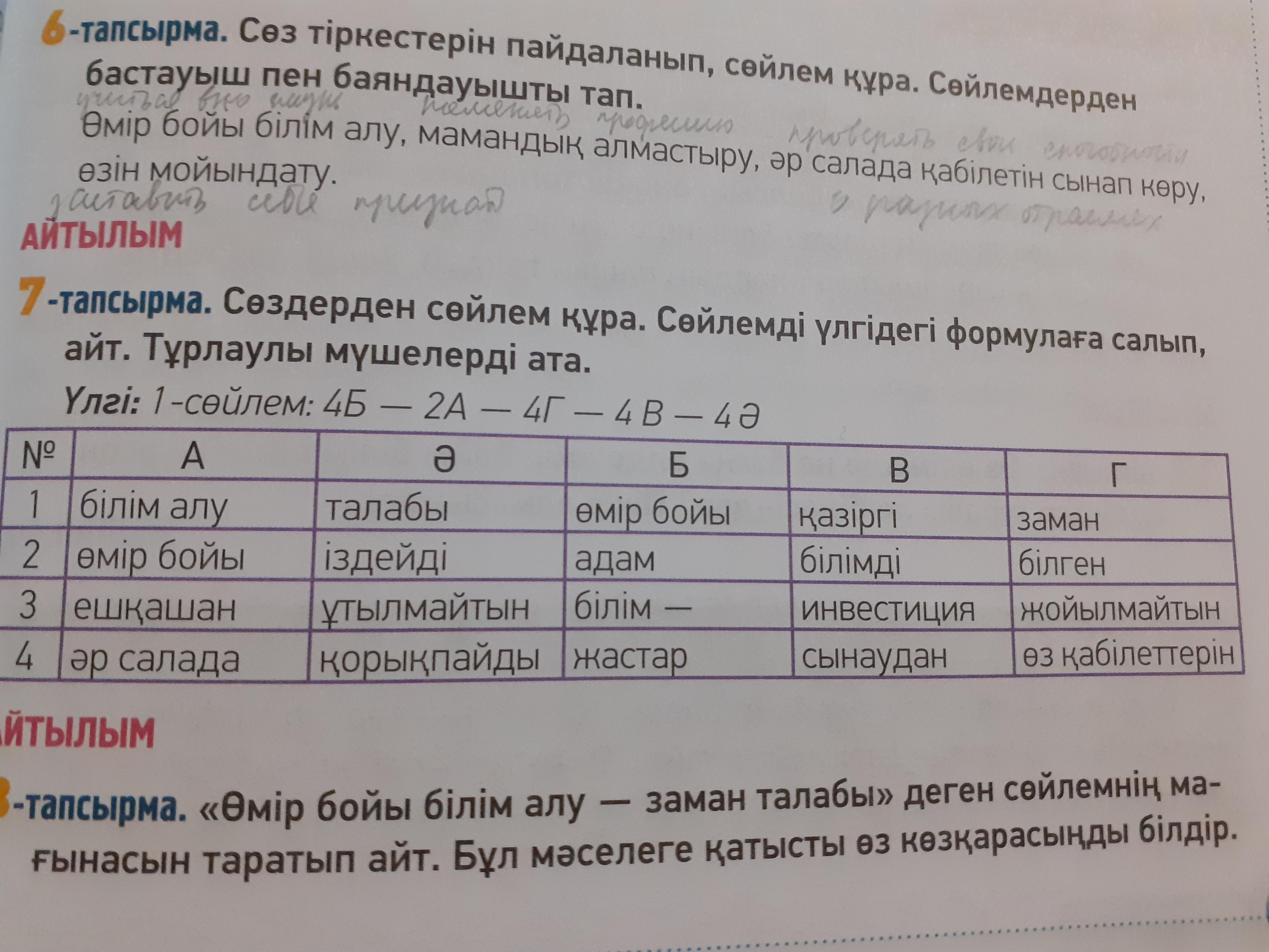 7-тапсырма. Сөздерден сөйлем құра, Сөйлемді үлгідегі формулаға салып,