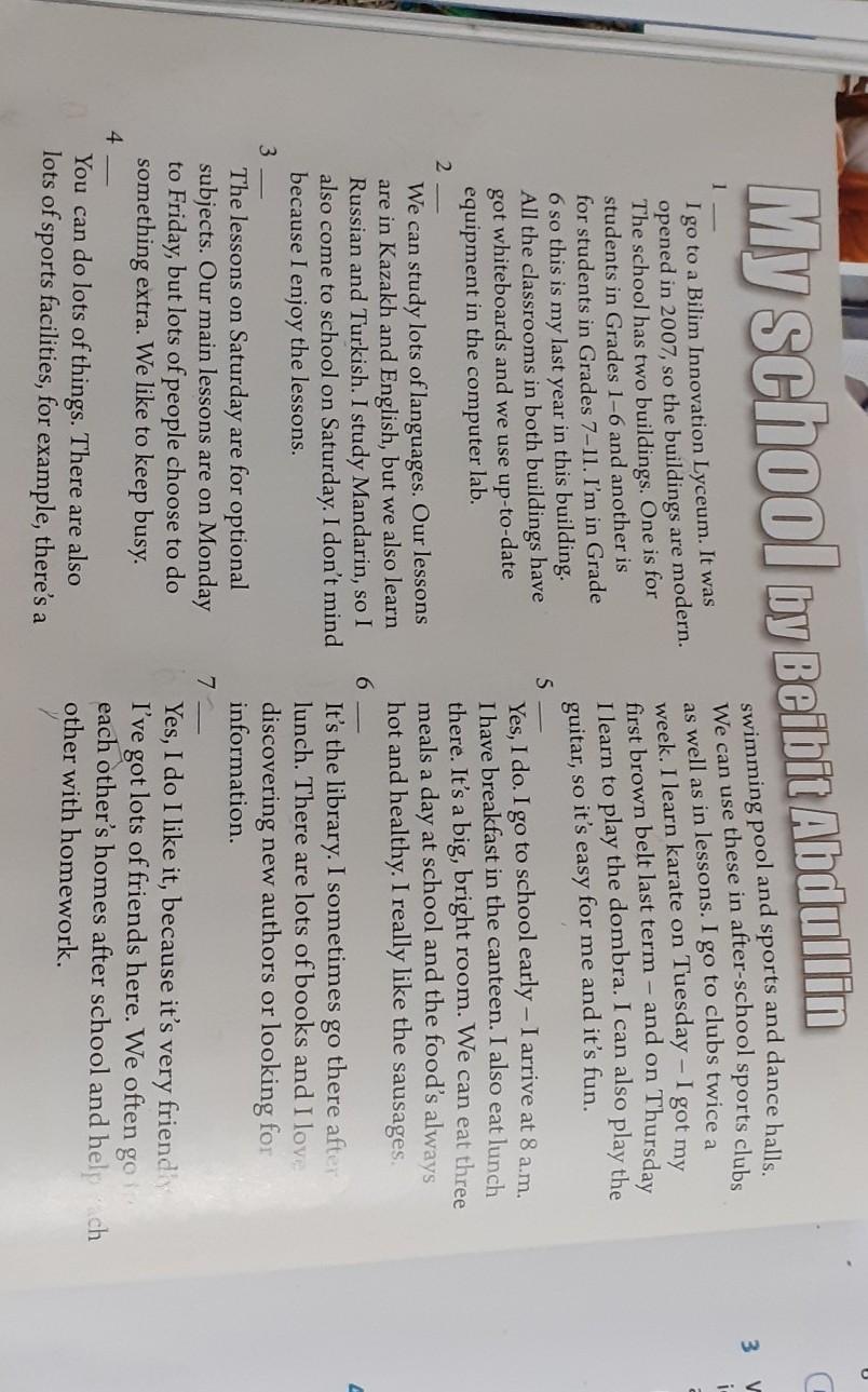 questions a-h with paragraphs 1–7. There is one extra question. Then listen and check.