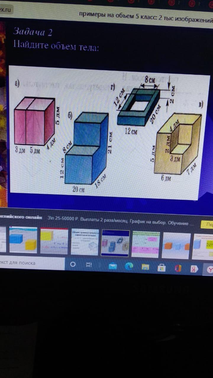 а) там где кусочек меньше: 3дм*4дм*5дм=60дм в кубе ( то есть над дм должна стоять маленькая цифра 3)