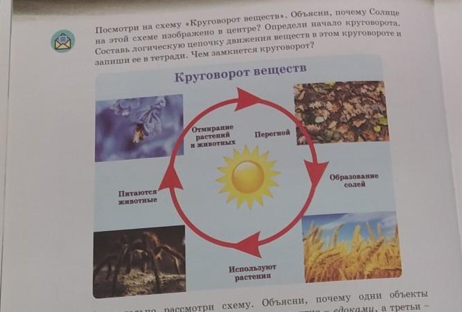 Посмотри на схему «Круговорот веществ». Объясни, почему Солнце