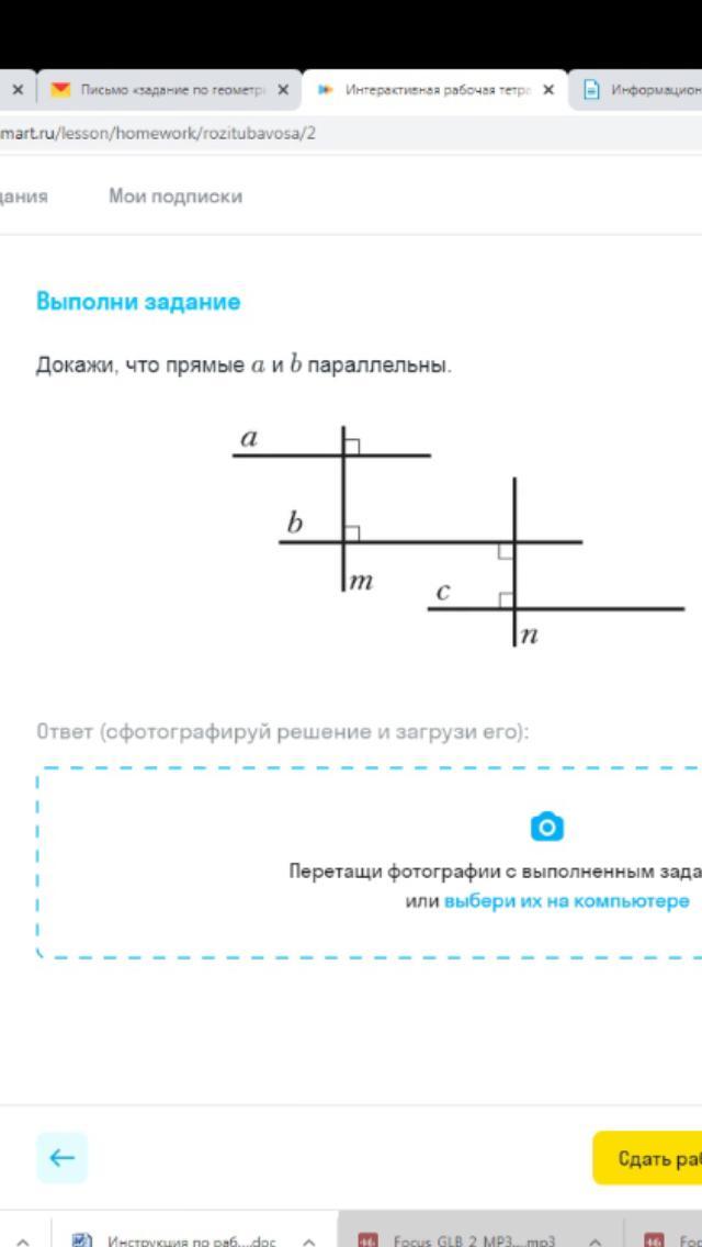 прямое m перпендикулярно к a и b так, что по признаку 1 параллельности прямых, они параллельны.