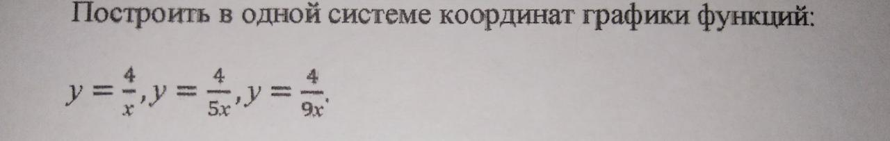 ПОМОГИТЕ!!! Построить в одной системе координат графики функций: y=4/x, y=4/5x,y=4/9x