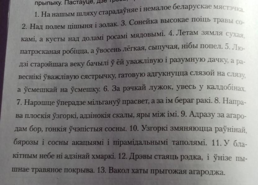 1 есць 2 стаиць 3 поиць 4 зямля робицца 5 бачаць 6 ен 7 мильгау 8_ 9 есць 10змяняюцца 11 няма 12 пад дрэвами 13 есць