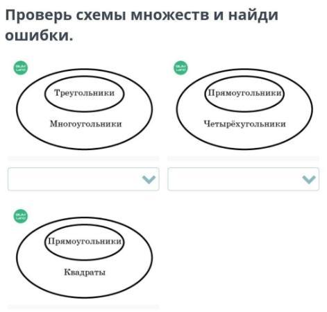 Третья схема не верная, прямоугольник не всегда совпадает с квадратом, наоборот: квадраты - часть множества прямоугольников.