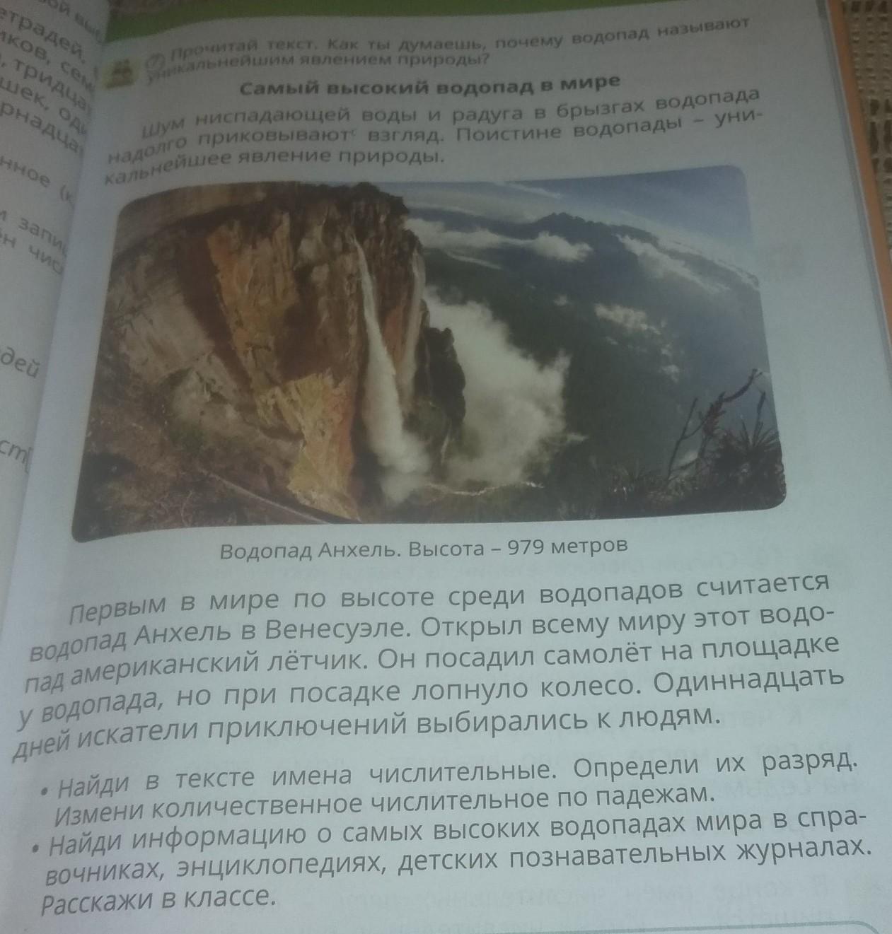 Прочитай текст Как ты думаешь почему водопад называют уникальным явлением природы Найди в тексте имена числительные определите их разряд Измени количественные числительные по падежам