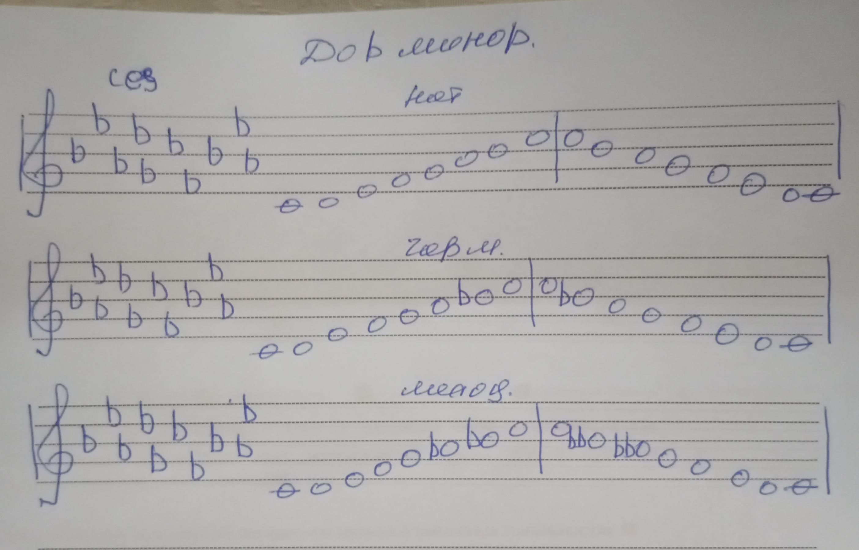 ces moll- это тональность,которая существует,но на практике не используется.В ней 10 бемолей.При записи у ключа три знака повторяются дважды,поэтому ноты ми,ля,си следует петь со знаком дуболь бемоль.