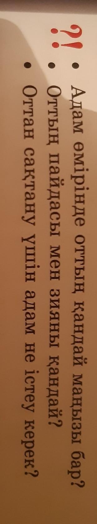 1) Оттың адам өмірінде маңызы зор. Кезінде отпен адамдар тамақ пісірген, жылу алған. Қазырде қарапайым сіріңкені алайық, сіріңке саяхатқа шыққанда таптырмайтын құрал.