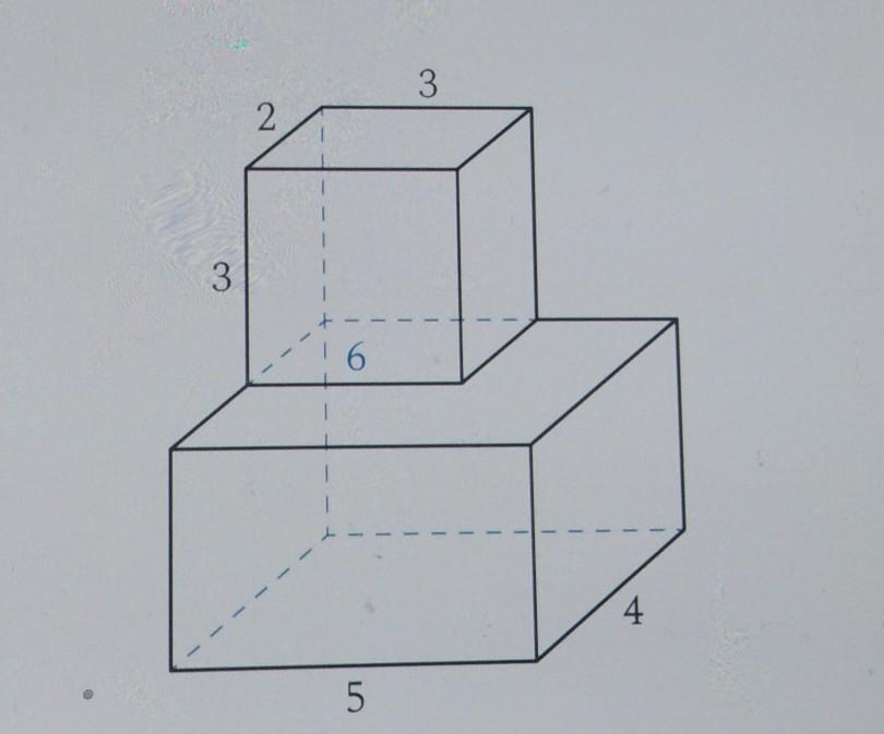 Поскольку в верхнем меньшем параллелепипеде не учитывается одна нижняя грань, то